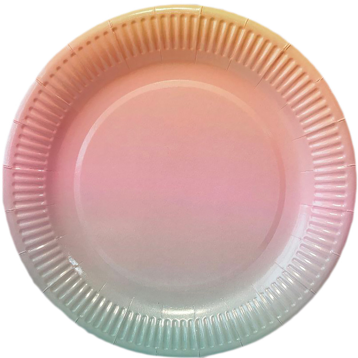 - Упаковка святкових одноразових тарілок на День народження в стилі омбре.